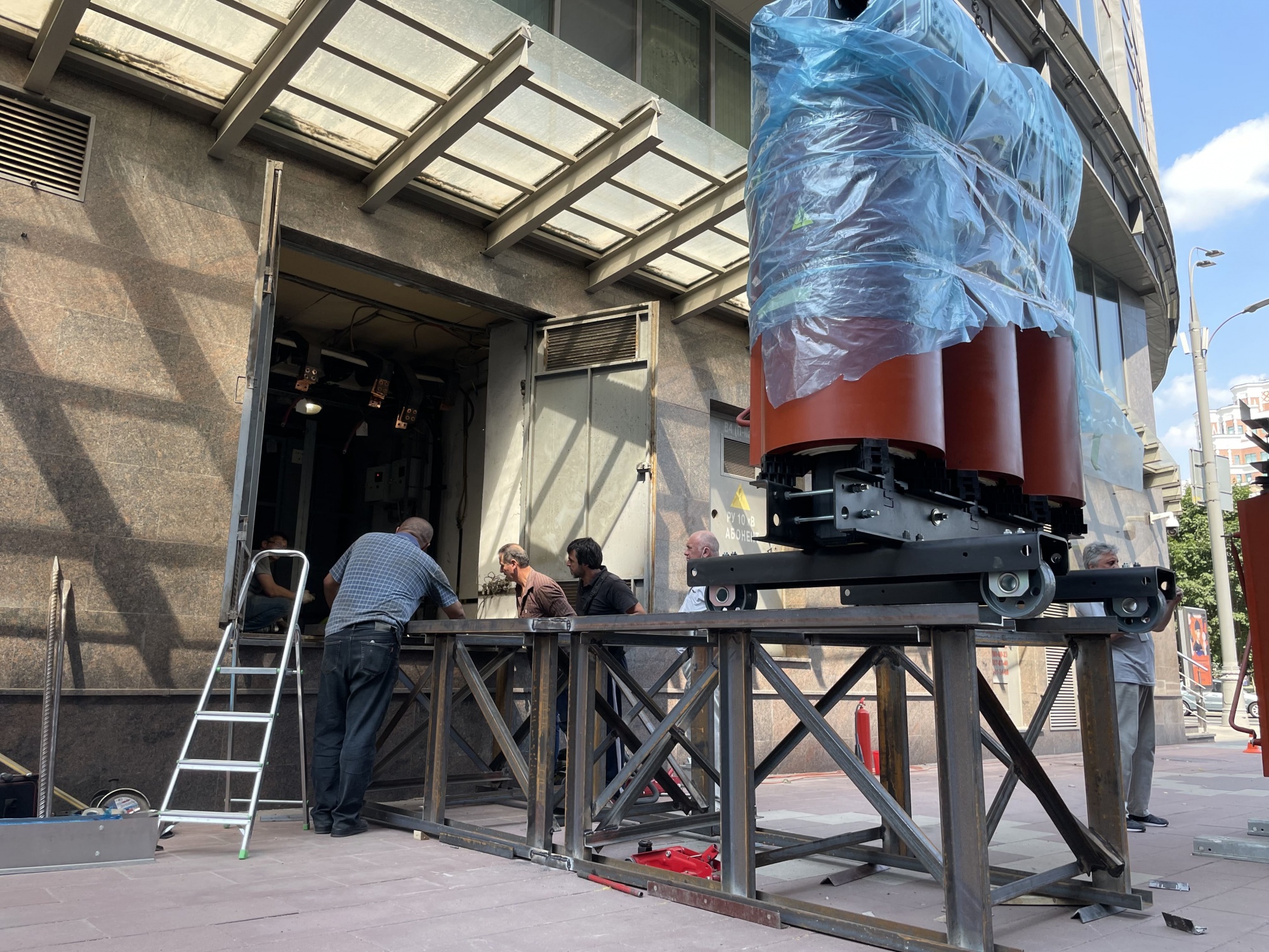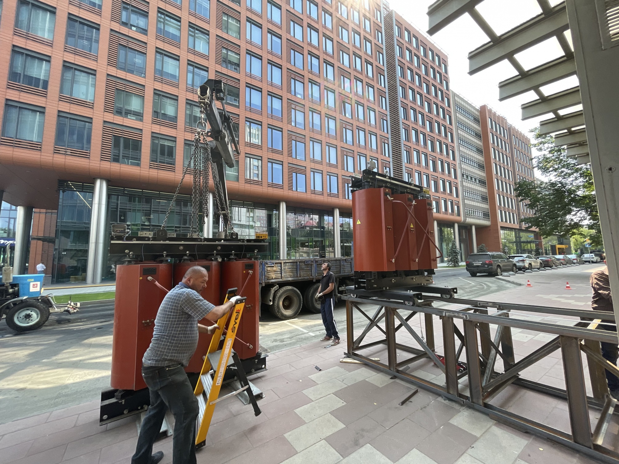 На объект был поставлен и смонтирован сухой трансформаторов TMCRES 2500 кВА DYn-11 IP00, в комплекте с виброопорами SA160 - Alpha, а так же дооснащение четырех трансформаторов 2500 кВА 10 0,4кв TMC Transformers двусторонними комплектами принудительного охлаждения и вентиляции Alphatec L12